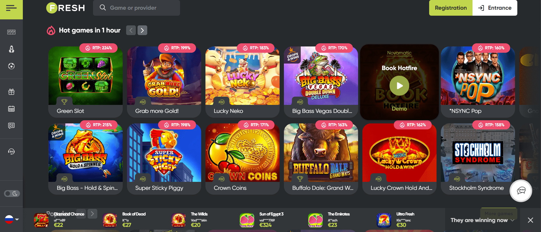 Im Fresh Casino können Spieler viele der beliebtesten Spiele der Branche genießen, darunter Video-Slots, Tischspiele und ein Live-Casino. Das Casino ist auch die Heimat einiger fantastischer Softwareanbieter wie Thunderkick, Playson, Nolimit City, Pragmatic Play und Wazdan. Die Website ist auf Englisch und Russisch verfügbar und unterstützt die meisten Web- und Mobilgeräte. Fresh Casino ist von der Regierung von Curacao lizenziert und reguliert.