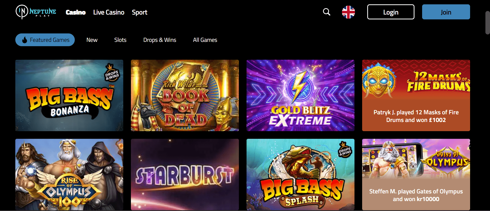 Neptune Play bietet eine Auswahl von Hunderten von Top-Slot-Spielen, Neuerscheinungen und Live-Dealer-Klassikern.