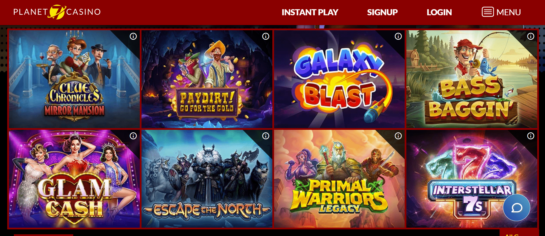 Planet 7 Casino hankkii pelikirjastonsa Realtime Gamingilta. Heillä on yli 200 peliä, mukaan lukien videokolikkopelit, pöytäpelit, videopokeri ja erikoispelit. Vaikka Realtime Gaming on kunnollinen toimittaja, vain yksi toimittaja rajoittaa merkittävästi kasinon tarjontaa. Jos haluat löytää kasinon, jolla on laajempi kirjasto, tutustu parhaiden kasinoiden luetteloomme.